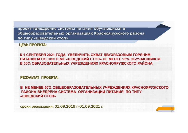 "Внедрение системы питания обучающихся в общеобразовательных учреждениях Краснояружского района по типу "шведский стол"