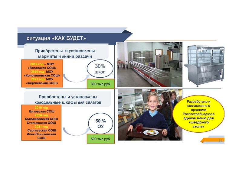 проведена работа по приобретению и установке мармитов, линий раздачи и