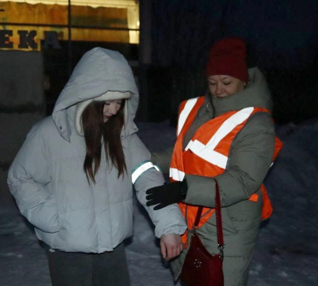 Организаторы вручили ребятам яркие светоотражающие повязки, а